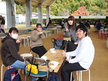 収穫祭(11月22日開催)では、9月に収穫したお米を現地の釜で炊いていただき、炊き立てのお米と現地の食材を使った豚汁を味わいました。