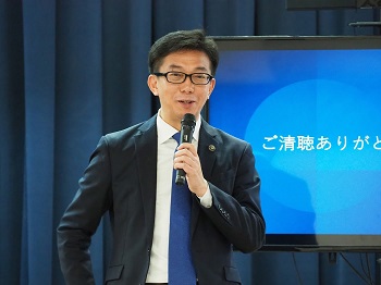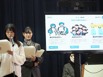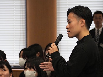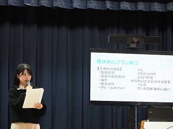 桑名市と本学は、まちづくり推進や地域社会の発展と優れた人材の育成等を目的に、昨年8月に連携・協力に関する協定を締結、既に様々な取り組みをスタートしていますが、今回、同市が抱える課題「人口減少対策の検討」について、若年層の視点でアイディアを出してほしいとの相談を受け、「地方自治と政策」をテーマに研究している加藤洋平ゼミが半年間の現地調査・研究を行い、市長以下関係者の前で各班ごとに政策提案を行いました。