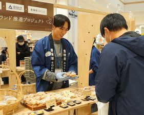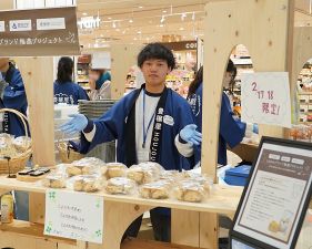 学生は自分で作成したチラシやPOPなどで、お客さんに使用した食材や商品に込めた思いなど説明しながら自ら販売しました。