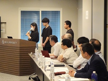 また、今回の共同プロジェクトについて、7月に本学で開催された合同地域連絡協議会(連携・協力協定を締結している自治体等が参加)でゼミ生から発表がありました。