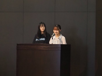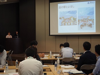 「学生による地域連携活動」の発表では、文学部の学生2名が、「道の駅とよはしとの商品開発」や「シルバー人材センターでの活動」など、