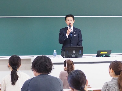 弥富市の概要、駅周辺地区の整備、2040年の社会へ向けて学生へのメッセージ、公務員に求められる適性についてご説明いただきました。