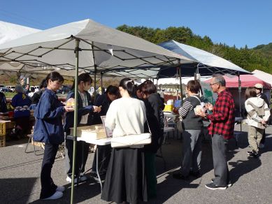 今年8月7日付および9月20日付でご紹介した「売木村お土産開発プロジェクト」の目玉となる現地実習が、11月2~3日の2日間、売木村で行われました。学生は、同村で11月3日に開催された秋色感謝祭において、自分たちが村の特産物を調査研究して考案したレシピに基づいたパン4種類を、販売しました。