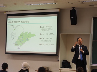 自治体の首長によるリレー講義として開講している「キャリアデザイン特殊講義」(豊橋キャンパス)の第7回(10/30)は、飛騨市の都竹淳也市長に務めていただきました。