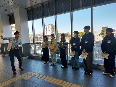 第2回は再開発中の名鉄東岡崎駅を見学するところから始まり、2030年の完成に向けた整備状況について市担当者から説明を伺いました。