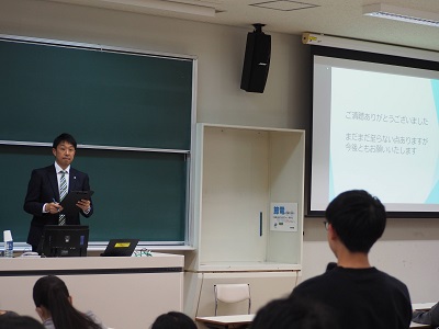 自治体の首長によるリレー講義として開講している「キャリアデザイン特殊講義」(豊橋キャンパス)の第9回(11/13)は、川西町の茂木晶町長に務めていただきました。