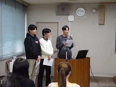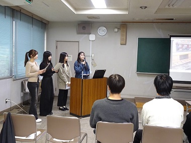 そして、11月14日の完成報告会では完成した動画の発表と、学生から工夫した点やアピールポイント等を副町長や町職員へ向けてプレゼンさせていただきました。