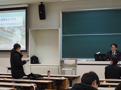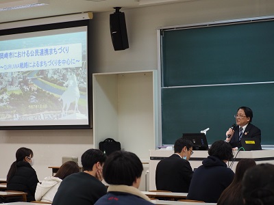 自治体の首長によるリレー講義として開講している「キャリアデザイン特殊講義」(豊橋キャンパス)の第15回(1/15)は、岡崎市の内田康宏市長に務めていただきました。