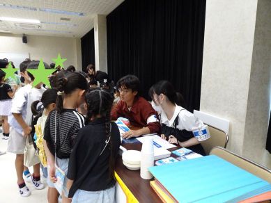 本学の学生ボランティアは、ハローワーク、市役所、銀行、起業センター等それぞれの担当に就いて、子どもたちの自主性を最大限尊重しながら、子どもたちが仕事をするサポートを行いました。最初は緊張していた子どもたちも、学生たちのフォローを受けて徐々に主体的に考え、動くようになり、短時間であっても、子どもたちの成長を感じさせられたひと時でした。