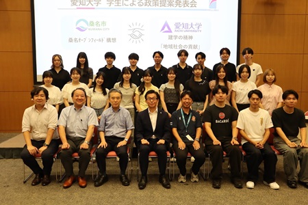 この発表会は、法学部 加藤洋平ゼミの学生が4月から取り組んできた、桑名市の課題に対する調査・研究の成果を、桑名市長をはじめとした