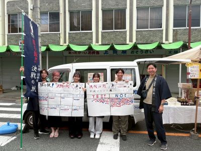 第2回では、新城の軽トラ市でPRと街頭調査を実施。