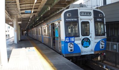 豊橋鉄道渥美線で、豊橋の大学生(愛知大学、豊橋技術科学大学、豊橋創造大学)が心を込めて書いた応援メッセージを掲示した特別列車「夢応援・BLUE ROSE号」の運行が、1月9日より始まりました。